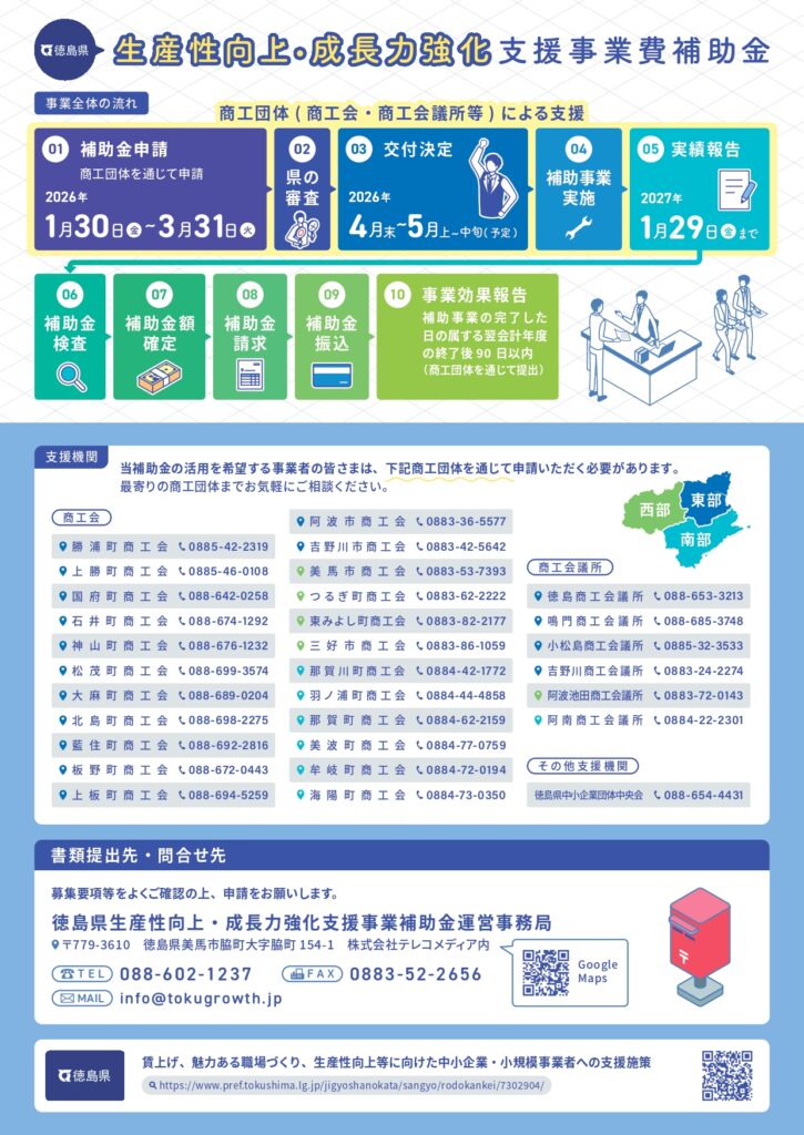徳島県より「生産性向上・成長力強化支援事業費補助金」の公募情報が公開されました!